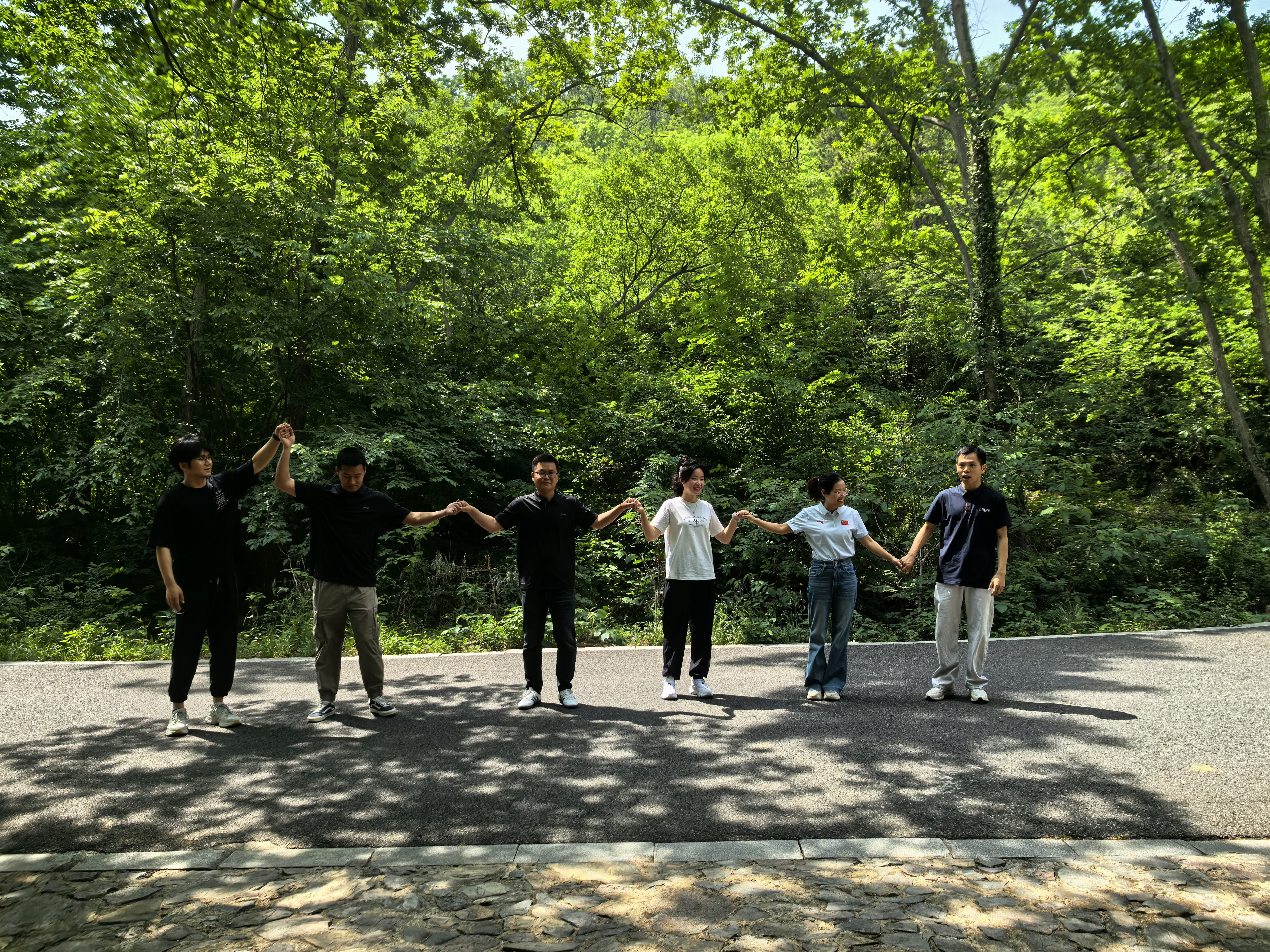 一穿到底。各組隊員手拉手站成一排,在最短的時間內(nèi)相繼穿過隊友用手臂搭成的“橋梁”,充分考驗團隊的協(xié)作能力和默契。