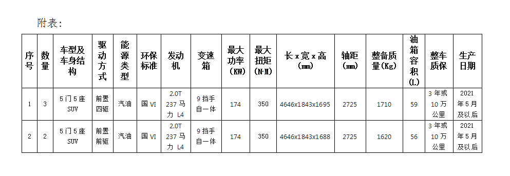 根據(jù)業(yè)務(wù)發(fā)展需要,滁州市興元商貿(mào)有限公司擬集中采購(gòu)業(yè)務(wù)保障車(chē)輛共計(jì)5輛,詳情見(jiàn)附表。