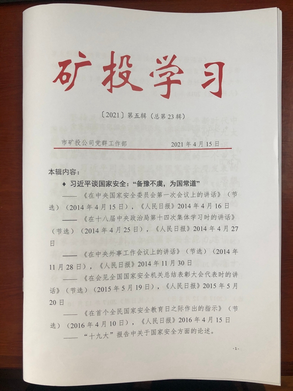 一是以《礦投學(xué)習(xí)》為載體,詳細(xì)整理了習(xí)近平總書(shū)記關(guān)于國(guó)家安全、網(wǎng)絡(luò)安全等方面的重要論述摘要,并印發(fā)至各部室、各子公司。有助于全部職工系統(tǒng)學(xué)習(xí)、理解、掌握習(xí)近平總書(shū)記關(guān)于總體國(guó)家安全觀的重要論述。