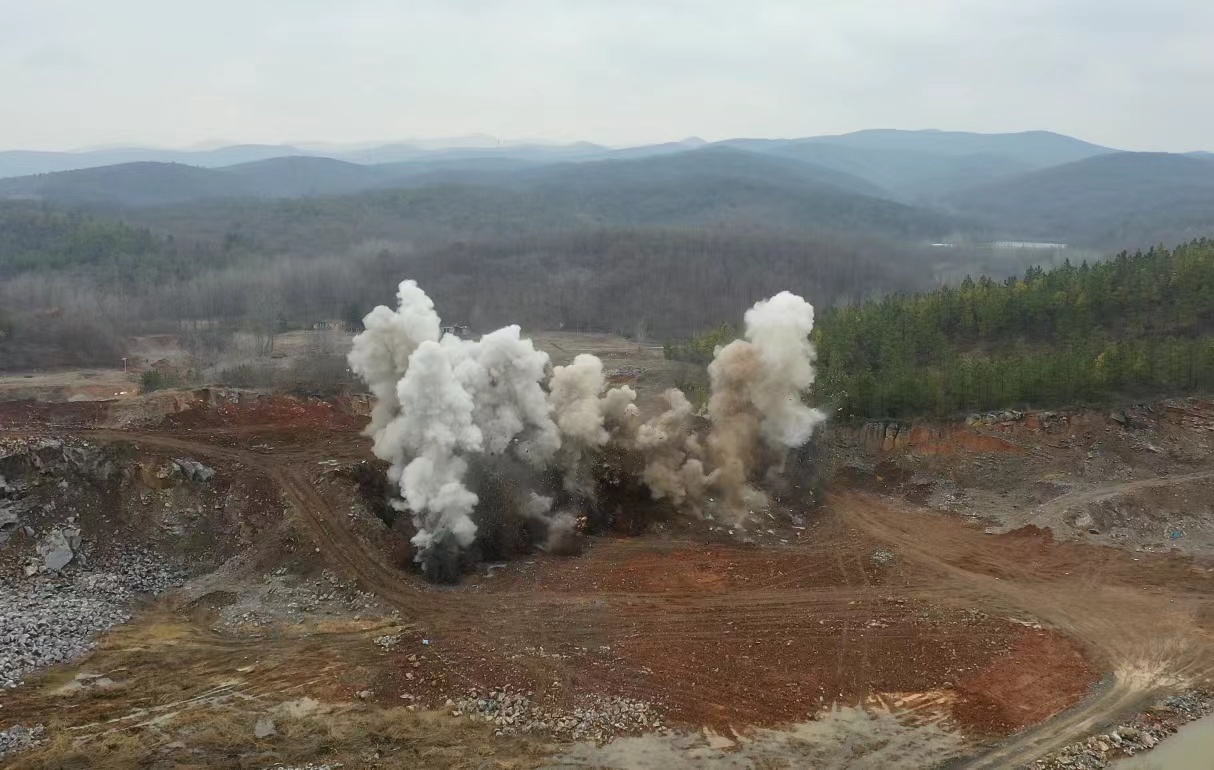 “3、2、1,起爆!”,2月18日(農(nóng)歷正月十八)上午11時(shí)58分,伴隨“砰”的一聲巨響,安徽省全椒縣馬塘湖整合礦區(qū)建筑石料用灰?guī)r礦900萬t/a露天采礦工程順利完成首次爆破。