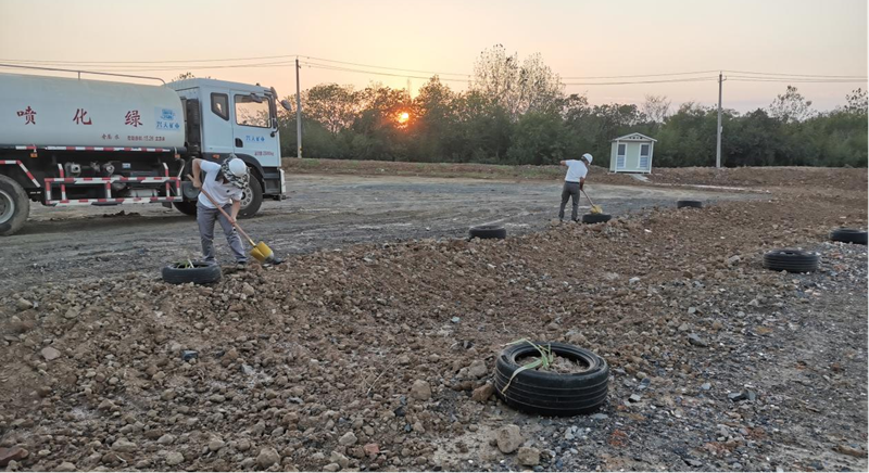 在具備種植條件后,公司陸續(xù)開(kāi)展移栽樹(shù)木、種植花草、澆水養(yǎng)護(hù)等工作。經(jīng)過(guò)一個(gè)多月的努力,原本荒蕪的礦區(qū)已經(jīng)悄然發(fā)生變化,路邊播撒的草種和格?;ǘ家寻l(fā)了芽。放眼望去,一抹抹淡綠色生機(jī)盎然。