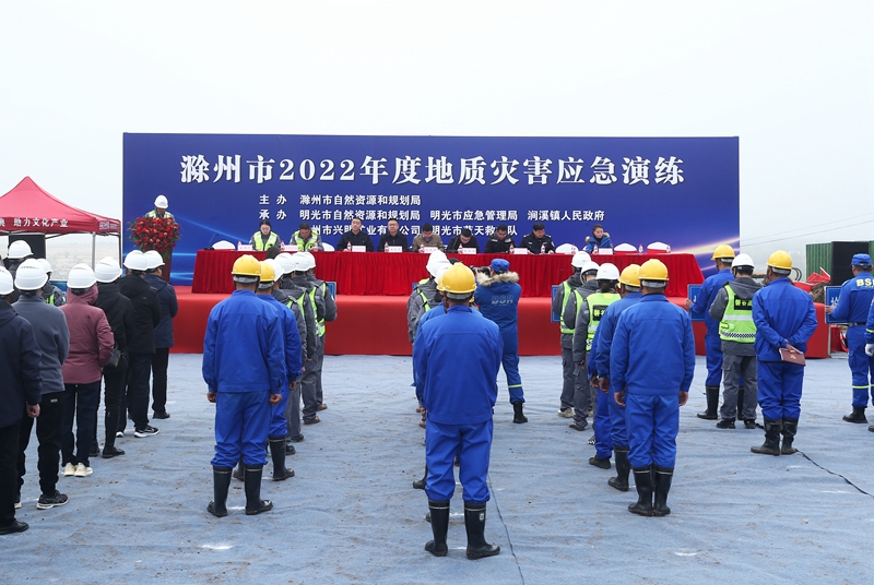為進(jìn)一步做好地質(zhì)災(zāi)害防治工作,提高廣大人民群眾對突發(fā)地質(zhì)災(zāi)害的應(yīng)急反應(yīng)能力,強(qiáng)化防災(zāi)避災(zāi)意識。11月18日上午,滁州市2022年度地質(zhì)災(zāi)害應(yīng)急演練在滁州市興明礦業(yè)巢東礦區(qū)舉行,滁州市自然資源和規(guī)劃局地質(zhì)礦產(chǎn)管理科科長孫忠民、生態(tài)修復(fù)科科長朱慶濤,明光市應(yīng)急管理局局長王大虎,明光市自然資源和規(guī)劃局副局長張宗建,澗溪鎮(zhèn)人民政府副鎮(zhèn)長孟慶德參加,滁州市各縣區(qū)自然資源和規(guī)劃部門礦政、生態(tài)修復(fù)管理人員45人應(yīng)邀到場觀摩。
