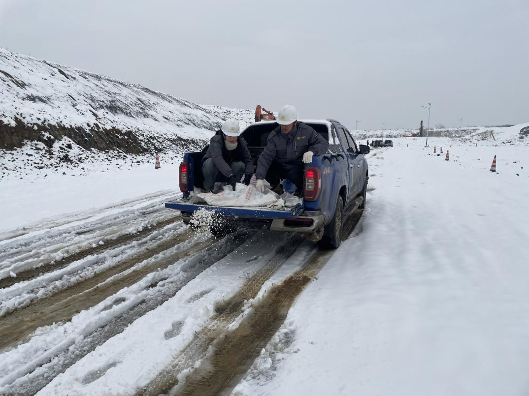 迎寒而上,盡心保障礦區(qū)生產(chǎn)。為應(yīng)對(duì)嚴(yán)寒天氣,早日實(shí)現(xiàn)礦區(qū)正常生產(chǎn)。19日上午10點(diǎn),公司組織干部群眾深入礦區(qū),搬起融雪劑、揮著鐵鍬、掄起雪鏟,投入到清除礦區(qū)積雪的勞動(dòng)中,累計(jì)拋灑融雪劑1500斤,基本覆蓋了礦區(qū)的所有運(yùn)輸?shù)缆贰?/span>